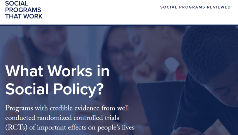 “Questo sito cerca di identificare quei programmi sociali che, sulla base di studi rigorosi, hanno prodotto benefici evidenti e duraturi per i partecipanti al programma e per la comunità di riferimento, in modo che tale conoscenza possa essere utilizzata in altri contesti. Lo scopo è consentire a politici, manager pubblici e altri lettori interessati di distinguere risultati davvero credibili sull’efficacia di un programma da molti altri che affermano di esserlo, ma non lo sono. Sebbene vi siano molti metodi di ricerca che possono essere utilizzati per produrre evidenza sull’efficacia delle politiche, questo sito si concentra esclusivamente sui risultati di studi randomizzati controllati (RCT) ben condotti, che sono ampiamente considerati come il metodo più robusto per valutare gli effetti delle politiche.“